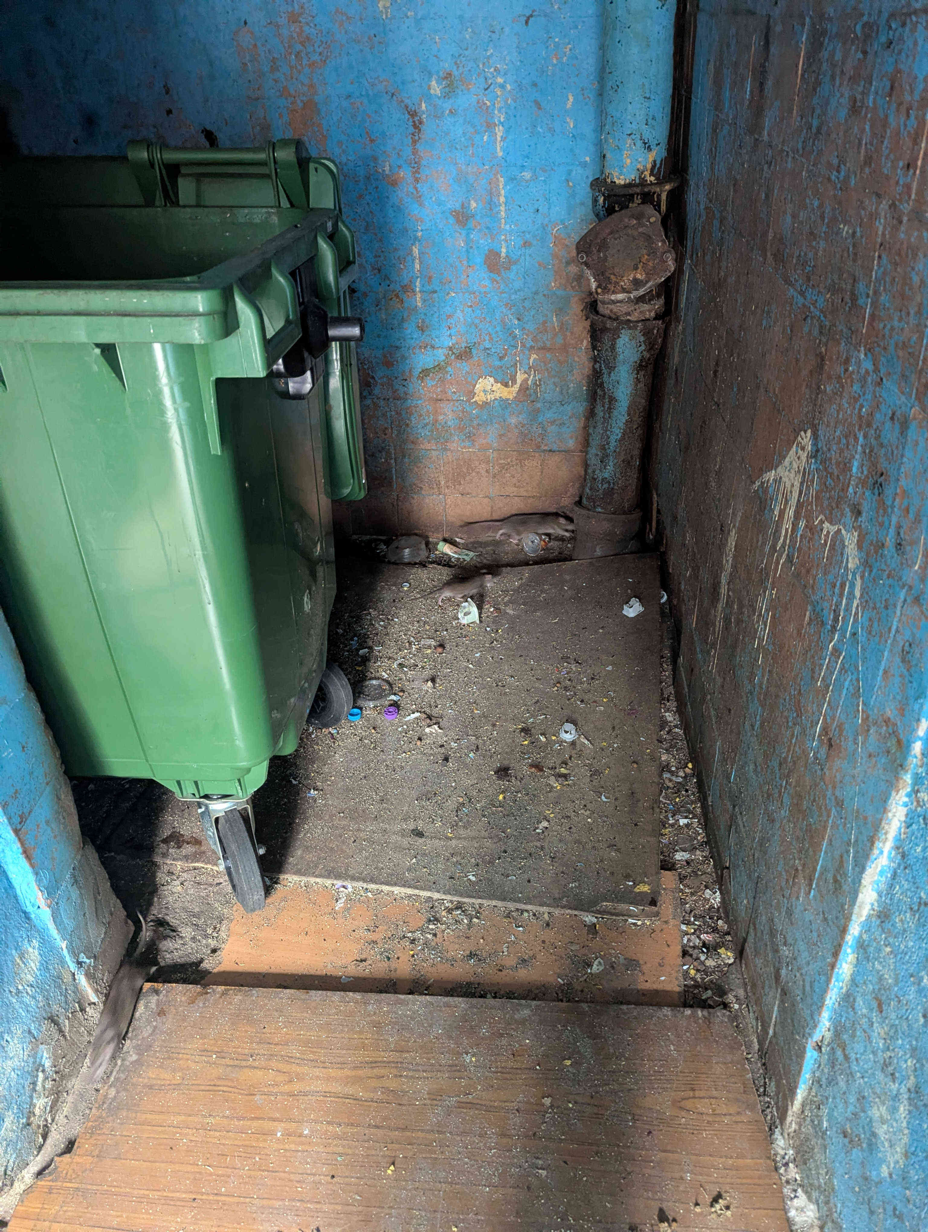 В приёмной мусоропровода наблюдается невыносимый запах разложения мусора и гниющих трупов крыс.